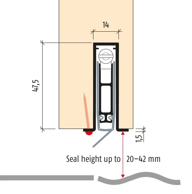 Automatická těsnící lišta na dveře. Vhodné pro dřevěné dveře, kde požadujeme utěsnit mezeru v rozmezí 20-42 mm.