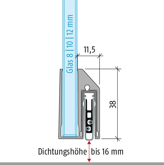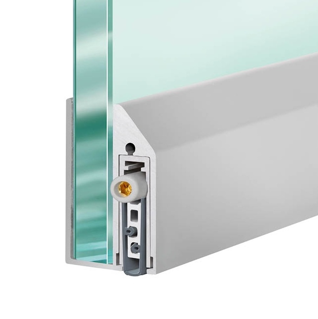 Automatické dveřní těsnění Planet KG-A8 úzké RD+FH | 48 dB, vhodné pro protipožární a kouřotěsné dveře, stupeň akustické izolace SK 1-3, jednostranné uvolnění s paralelním spouštěním a automatickou kompenzací pro šikmé podlahy, ochranný profil ze stříbrně eloxované oceli EV1 nebo matně eloxované nerezové oceli.