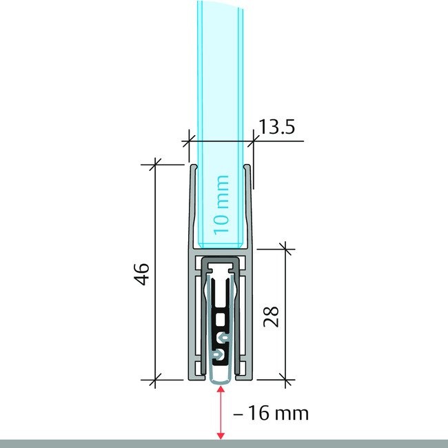 Automatická těsnící lišta pro skleněné dveře s tloušťkou 10 mm .