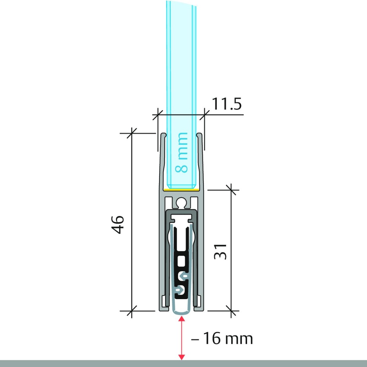 Automatická těsnící lišta pro skleněné dveře s tloušťkou 8 mm . LIšta je vhodná pro standardní i požární dveře.