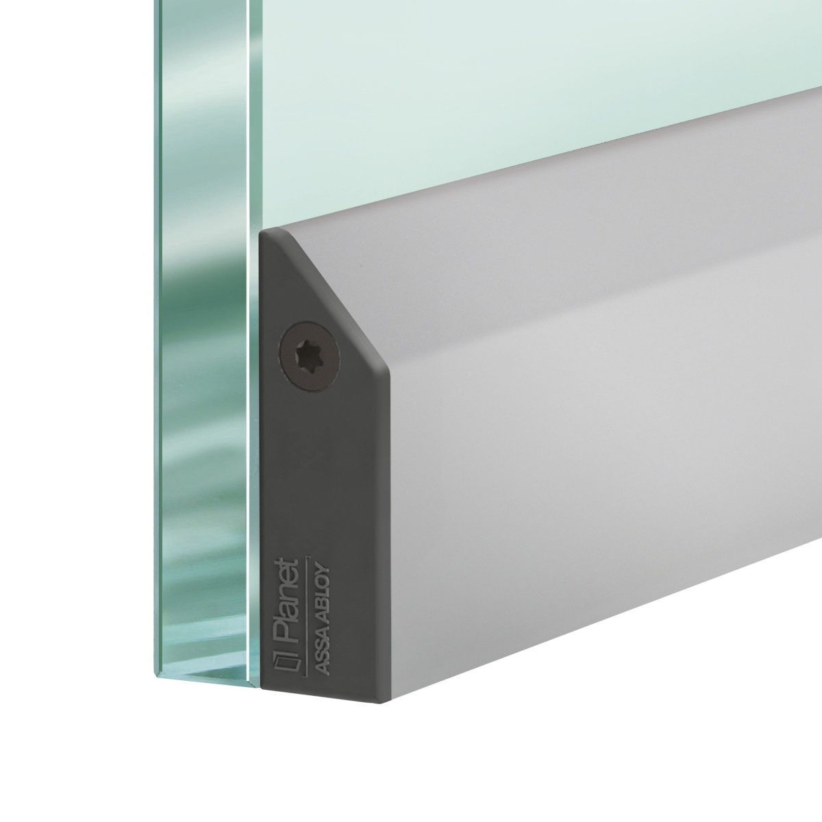 Automatické dveřní těsnění, vhodné pro protipožární a kouřotěsné dveře, jednostranný spouštěč s paralelním spouštěním a automatickou kompenzací pro šikmé podlahy, ochranný profil ve stříbrném eloxovaném provedení EV1, matné nerezové oceli nebo matně černém eloxovaném provedení C35, k nalepení na boční stranu.