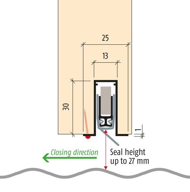 Automatická těsnící lišta na dveře. Vhodné pro dřevěné dveře, ocelové nebo plastové dveře.