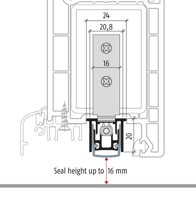 Automatická těsnící lišta na dveře. Vhodné pro plastové dveře.