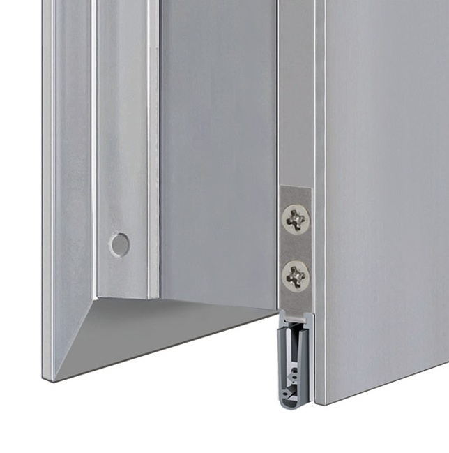 Automatická těsnící lišta na dveře se šířkou pouze 8 mm. Vhodné pro ocelové nebo hliníkové dveře, kde se lišta instaluje do mezery profilu.