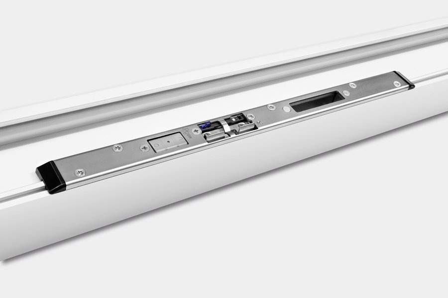 Magnetický spínač v rámové části zámku zajišťuje, aby se masivní hákové závory zasunovaly do protiplechů ve správném okamžiku, tedy ve chvíli, kdy se již křídlo nachází v rámu. Tato funkce zabraňuje poškrábání nebo poškození rámu, ke kterým by mohlo dojít, pokud by se uzavírací body vysouvaly příliš brzy. Další neopominutelnou výhodou tohoto řešení je snížení hlučnosti zámkového mechanismu. Centrální magnetický spínač na rámu spolupracuje se speciálním čepem na křídle, který zajišťuje správnou funkčnost mechanismu bez ohledu na velikost vůle v drážce.