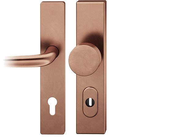 Bezpečnostní kování pro vstupní dveře s ochraným překrytím cylindrické vložky