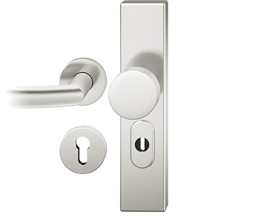 Bezpečnostní kování pro vstupní dveře s ochraným překrytím cylindrické vložky