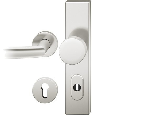 Bezpečnostní kování pro vstupní dveře s ochraným překrytím cylindrické vložky
