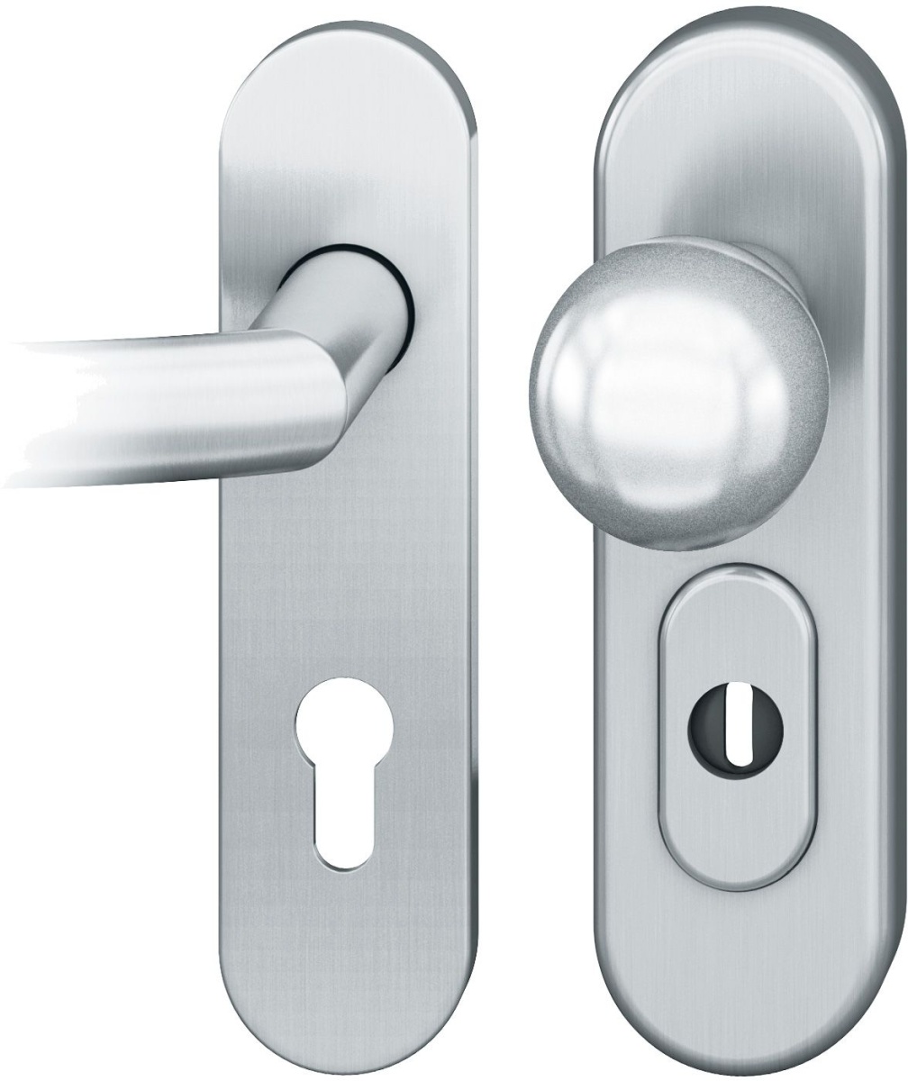 FSB 73 7377 bezpečnostní kování, klika/koule, 2. bezp. třída Nerez kartáčovaná, Se štítkem