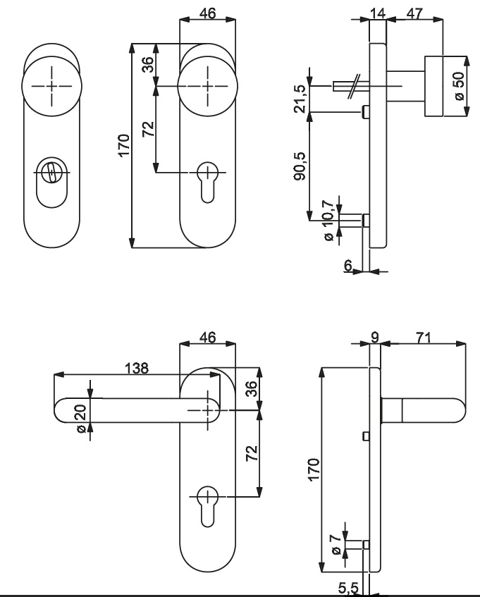 Štítkové kování Südmetall Paula II-LS, Variostar