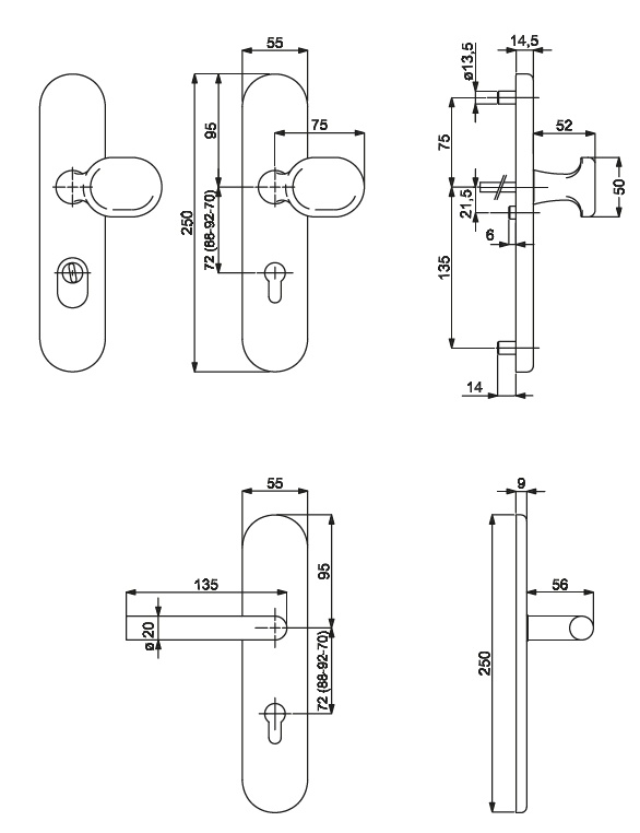 Štítkové kování Südmetall Ronny II-LS, Variostar