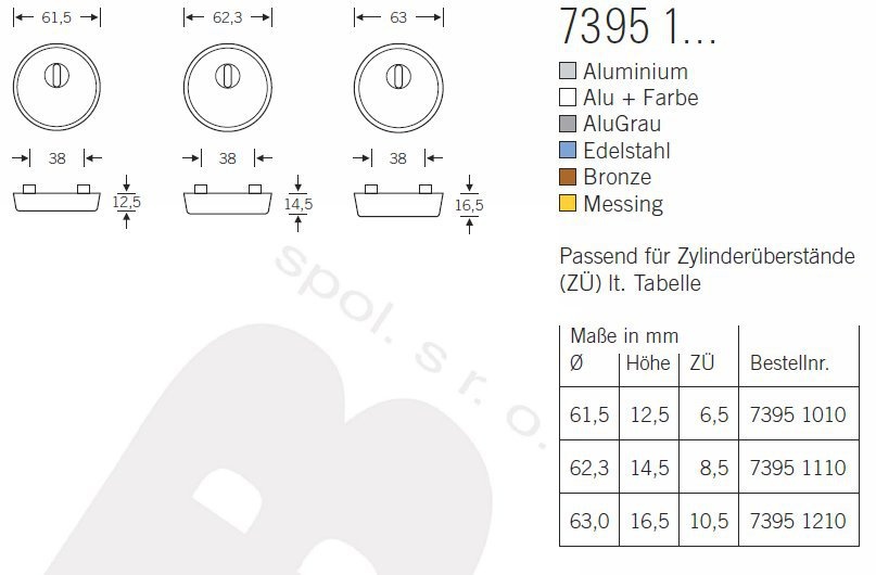 Rozety se vyrábí v masivní nerezi, eloxovaném hliníku, mosazi a bronzu.