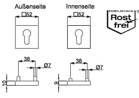 Bezpečnostní rozeta Südmetall Square bez překrytí