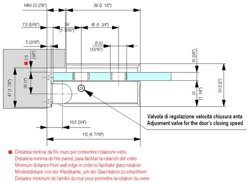 Biloba BL 8060 zeď/sklo - objektový samozavírací pant pro skleněné dveře