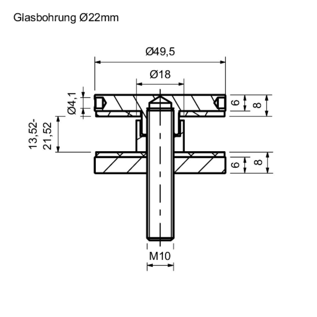 Bodový úchyt pro sklo, průměr 49,5 mm