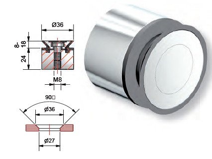 Nerezový bodový úchyt pro sklo se zapuštěnou montáží
