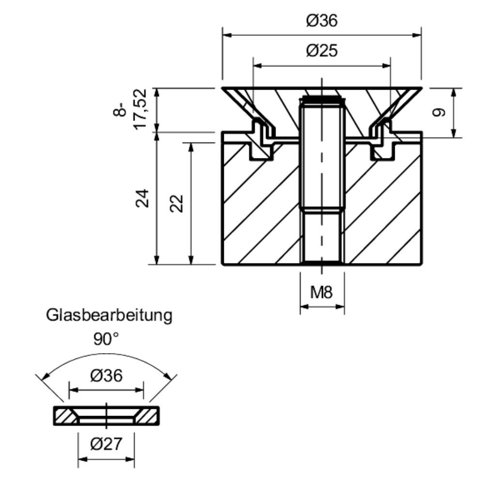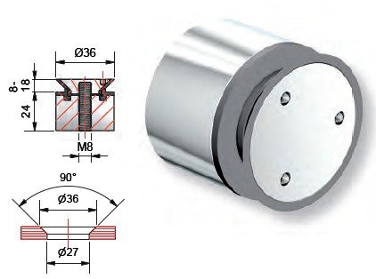 Bodový úchyt pro sklo, zapuštěný, nerez A2