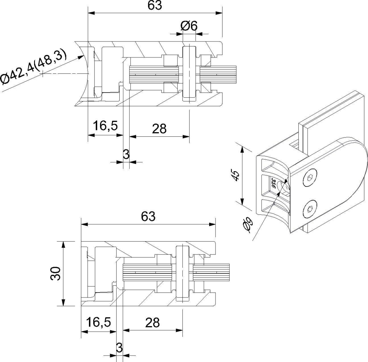 Držák skla AbP typ 4, 45x63 mm, černá