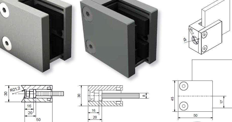 Úchyt pro sklo na plochý nebo kulatý sloupek