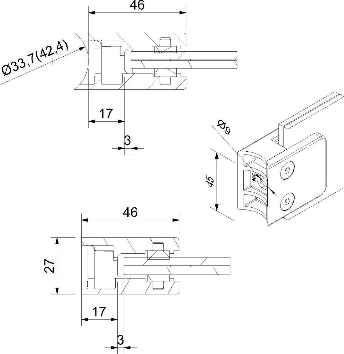 Držák skla AbP typ 7, 45x46 mm, nerez A2, bez vrtání do skla
