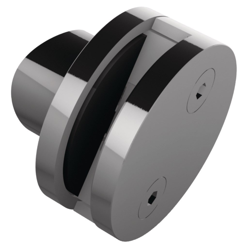 Držák skla naložený, středový, bez vrtání skla, nerez