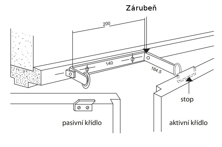 Dveřní křídlo na kterém je instalována delší strana koordinátoru se zavře pomaleji než druhé. Je tak zajištěno správné zavření dveří v případě použití automatických zástrčí.