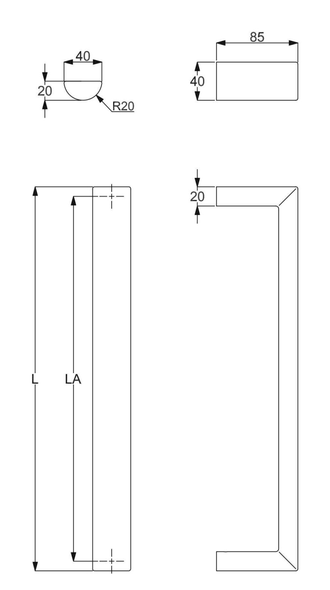 Skryté, jednostranné upevnění madel Südmetall ECO (dřevo, plast, hliník)