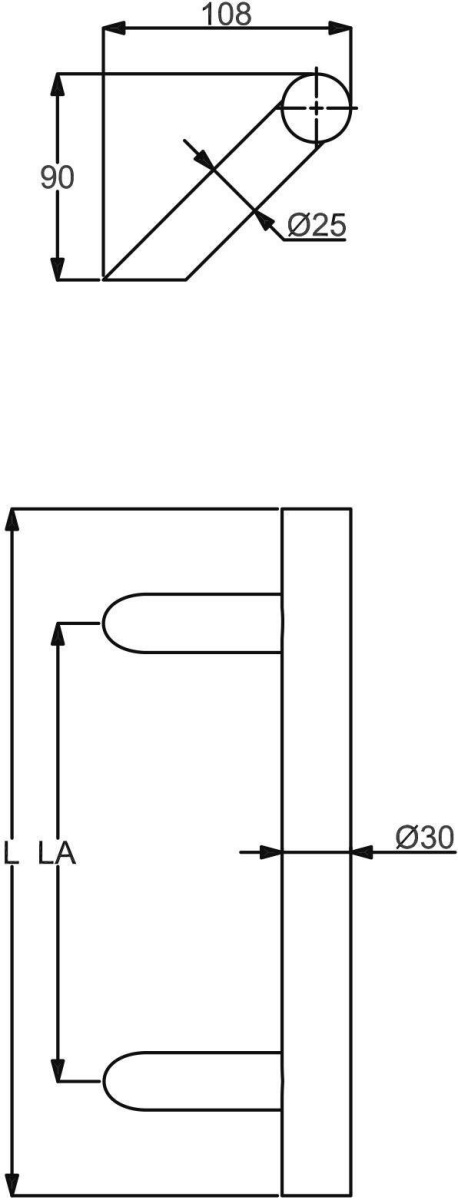 Dveřní madlo , vyosené 45°