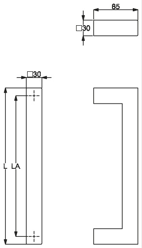 Dveřní madlo Südmetall Kreta, nerez, 30x30 mm L 1600 mm / LA 1570 mm