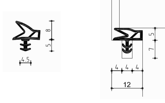 Tento druh těsnění je díky své speciální konstrukci vhodný pro bezfalcové dveře, při zavření dveří se nedeformuje mimo drážku v zárubni.