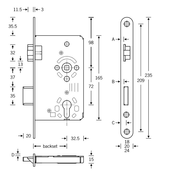 Rozměr čela zámku: 20x235 mm nerez nebo stříbrná