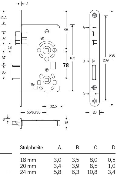 Backset: 55 mm