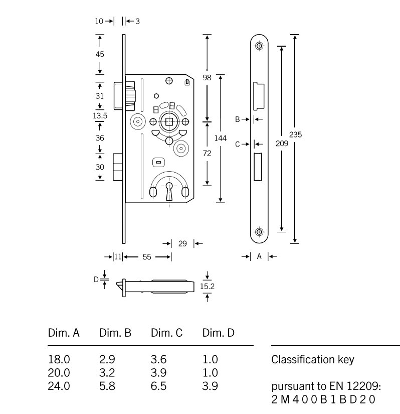 Rozměr čela zámku: 20x235 mm