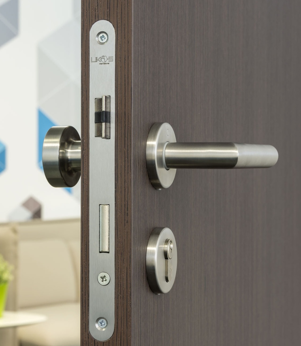 Dveřní zámek pro interiérové dveře s tichou střelkou a nerezovým čelem
