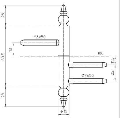 Dveřní závěs pro falcové dveře s designovou hlavou