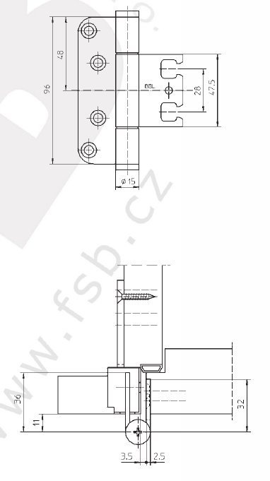 Při otevírání se pant zdvihne. Dveře se díky závitu v pantu samy zavřou.