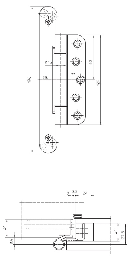 Seřizovací kapsa ze zadlabává do dveřního křídla