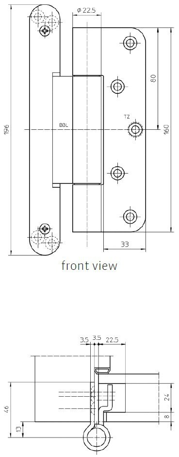 Závěs pro bezfalcové dveře v objektovém provedení s vysokým zatížením