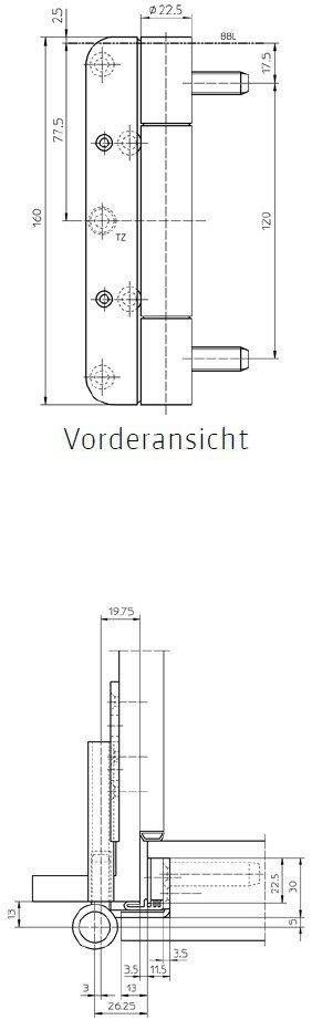 Závěs pro falcové dveře v objektovém provedení s vysokým zatížením