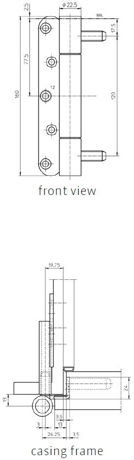 Závěs pro falcové dveře v objektovém provedení s vysokým zatížením