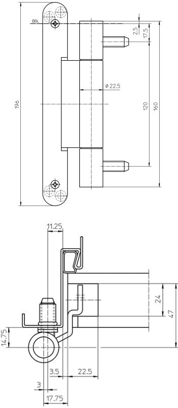 Závěs pro falcové dveře v objektovém provedení s vysokým zatížením