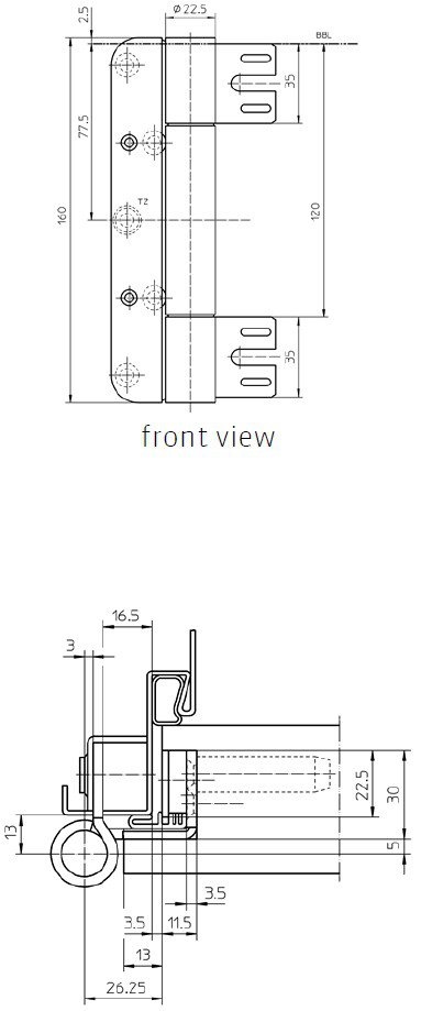 Závěs pro falcové dveře v objektovém provedení s vysokým zatížením do kovové zárubně