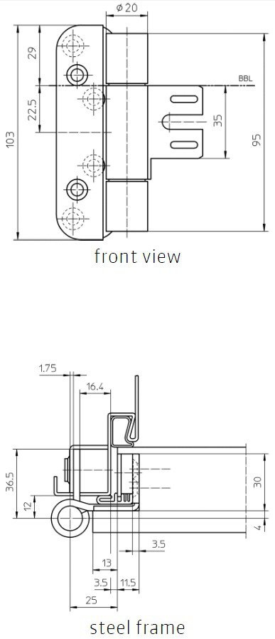 Závěs pro falcové dveře v objektovém provedení s vysokým zatížením do kovové zárubně