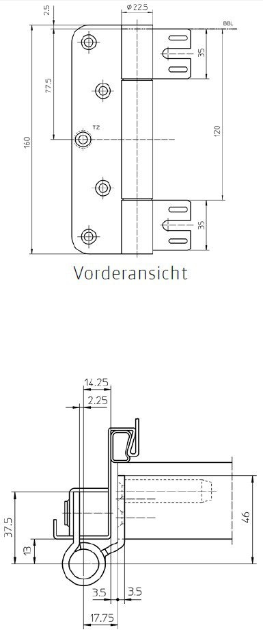 Závěs pro falcové dveře v objektovém provedení s vysokým zatížením do kovové zárubně