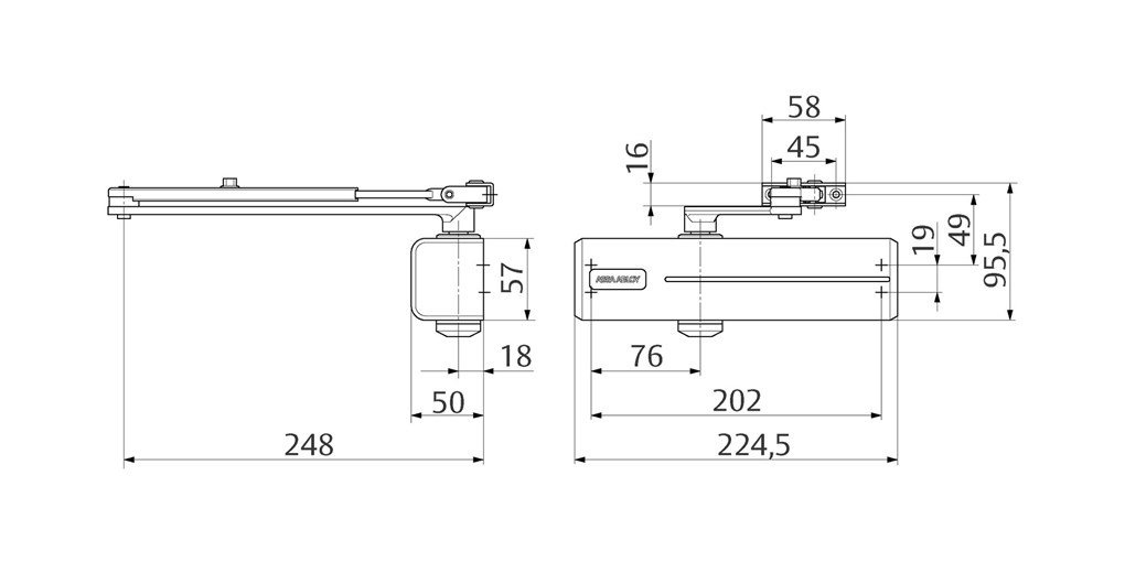 Dveřní zavírač Assa Abloy DC120 set s raménkem