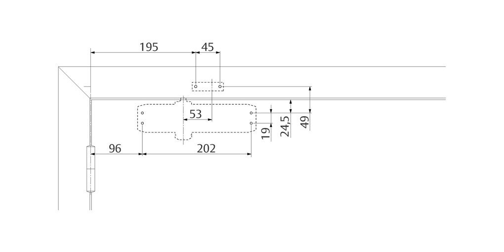 - dveřní zavírač s hřebenovou technologií a lomeným ramínkem