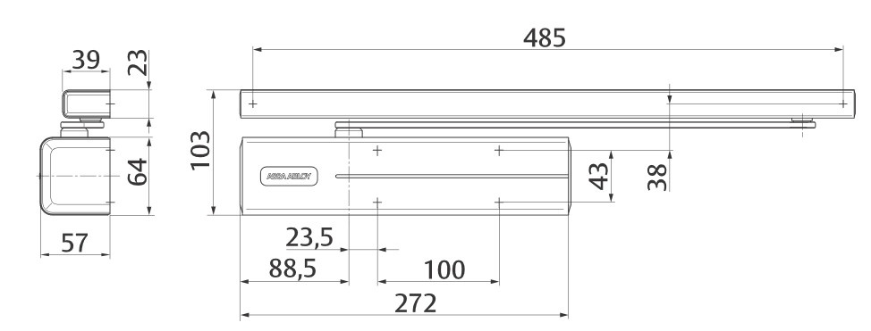 Požární konzole Assa Abloy G464 NEW pro dvoukřídlé dveře, 1x el.magnet