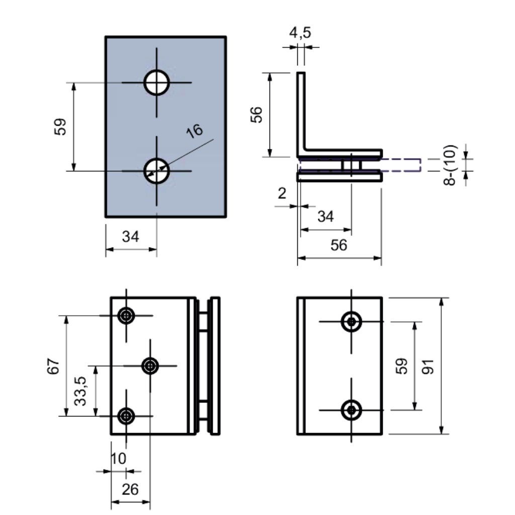ECONOMY - rohový úchyt, zeď/sklo 90°, chrom/černá matná