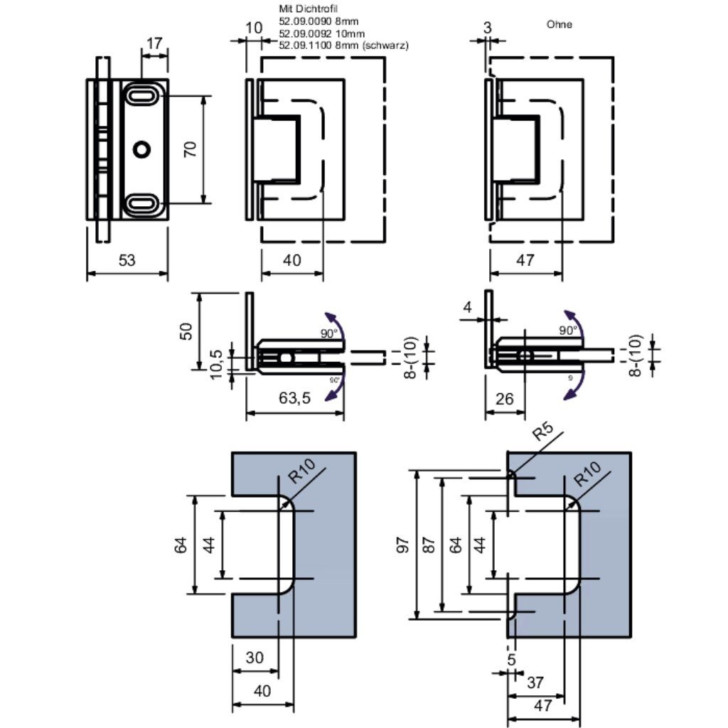 Pant pro sprchové dveře ECONOMY - zeď/sklo, černá/chrom Černá matná