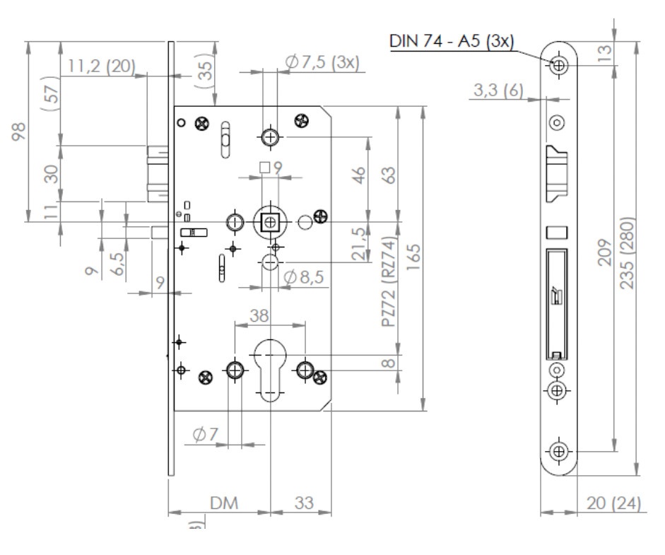 - Volitelný backset 55, 60, 65, 70, 80 mm